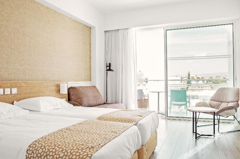 Rooms offer garden views, balconies, and bathtubs, with a terrace and a garden to enjoy the outdoors. Soundproof rooms and an elevator serving upper floors ensure comfort and quiet, while a playground invites little explorers. The setting blends sun-soaked leisure with family-friendly comfort in a welcoming Paphos environment.