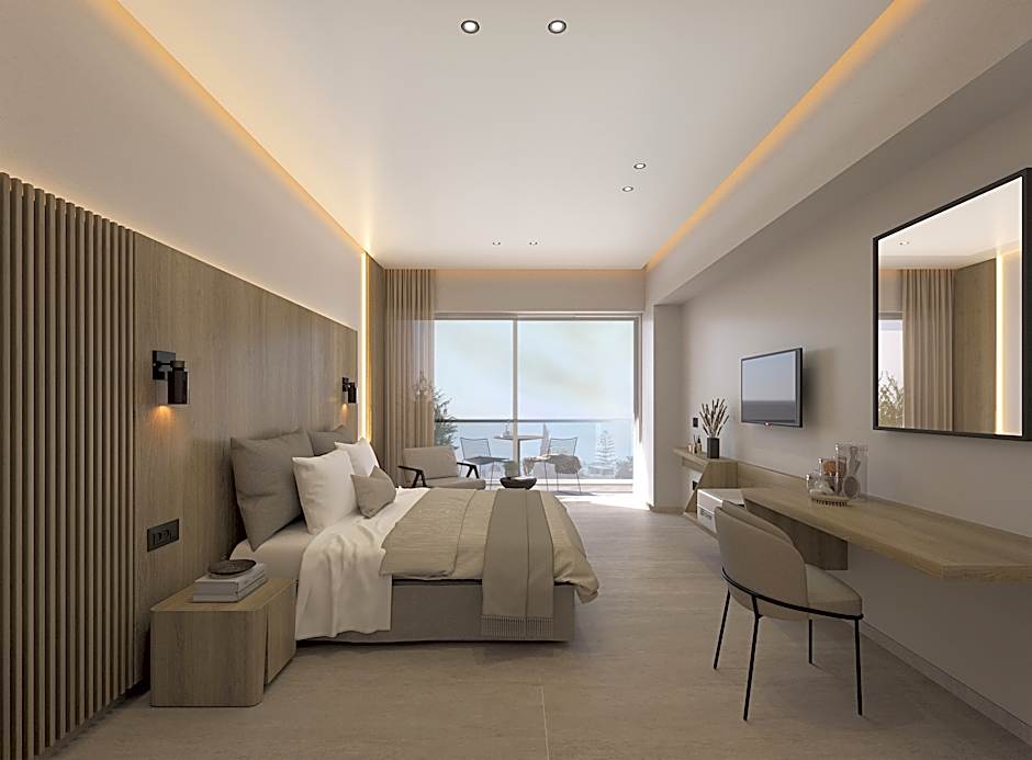 The spacious double room offers air conditioning, soundproof walls, a balcony with sea views as well as a private bathroom boasting a walk-in shower. The unit has 2 beds.